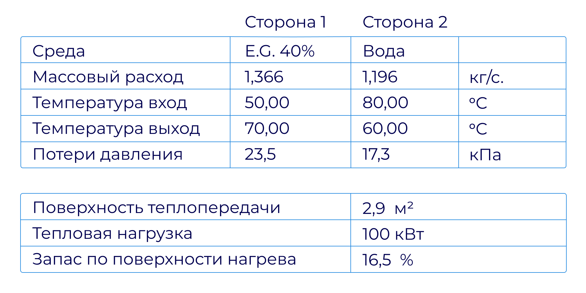 Габариты (ВхШхГ): 526мм х 111мм х 148.5мм. Масса (кг): 2.5+0.2*n Кол-во пластин: 60. Патрубки Ду32 (1 ¼ дюйма) — наружная резьба. Поверхность теплообмена 2.9м² (рассчитывается по формуле 0.05*(n-2), где n — количество пластин). Объём канала (л): 0.095.